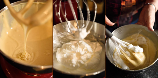 * Battre les blancs en neige ferme avec la pincée de sel.